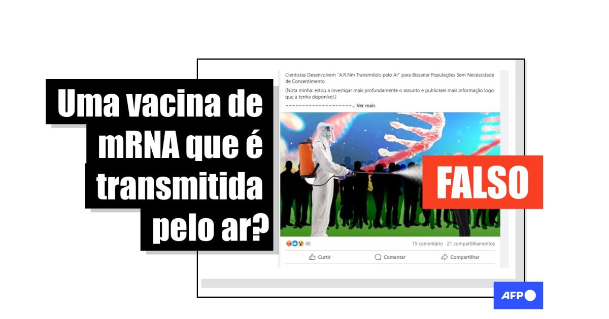 “SEM AGULHAS, SEM CONSENTIMENTO, SEM VOCÊ SABER: Cientistas desenvolvem ‘mRNA aerotransportado’ para vacinar populações sem necessidade de consentimento”, diz uma das publicações que circulam no X (antes Twitter) e no Facebook.