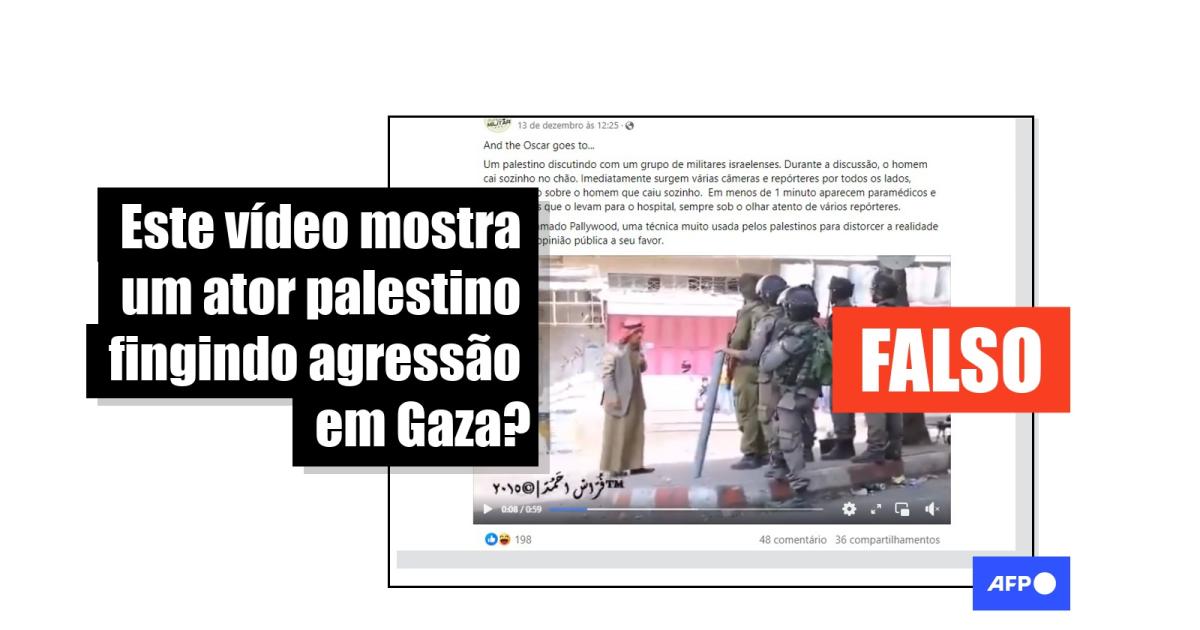 “And the Oscar goes to… Um palestino discutindo com um grupo de militares israelenses. Durante a discussão, o homem cai sozinho no chão. Imediatamente surgem várias câmeras e repórteres por todos os lados, convergindo sobre o homem que caiu sozinho. Em menos de 1 minuto aparecem paramédicos e ambulâncias que o levam para o hospital, sempre sob o olhar atento de vários repórteres”, diz uma das publicações compartilhadas no Facebook.