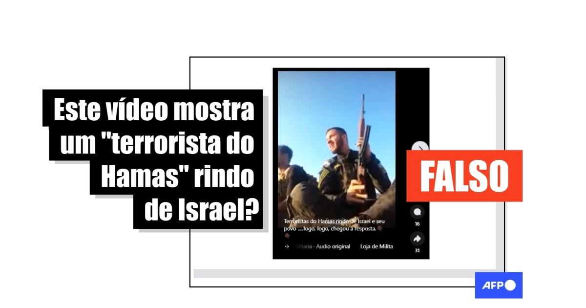 “Terroristas do Hamas rindo de Israel e seu povo… logo, logo, chegou a resposta”, diz uma das publicações compartilhadas no Facebook. O conteúdo também circula no Instagram e no Kwai.
