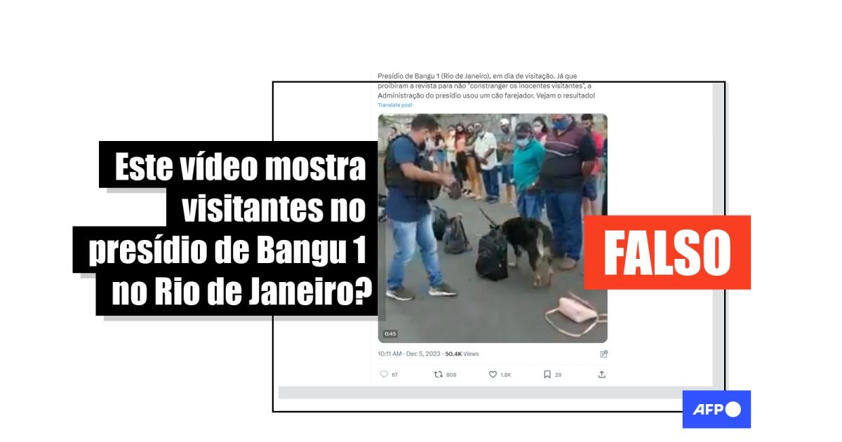 “Presídio de Bangu 1 (Rio de Janeiro), em dia de visitação. Já que proibiram a revista para não ‘constranger os inocentes visitantes’, a Administração do presídio usou um cão farejador. Vejam o resultado!”, diz uma das publicações compartilhadas no Facebook, no Instagram, no Telegram, no Kwai, no TikTok e no X, além do canal do ex-presidente Jair Bolsonaro (PL) no WhatsApp.