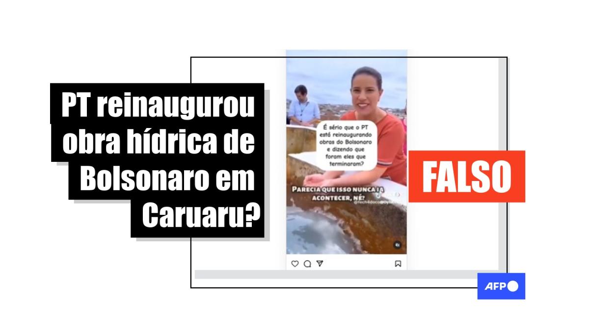 Mas, diferentemente do que as peças de desinformação afirmam, o vídeo não mostra a reinauguração de uma obra feita por Bolsonaro, uma vez que a obra que conecta a estação a uma adutora nem sequer foi concluída e operava em fase de teste na ocasião em que a gravação foi feita.