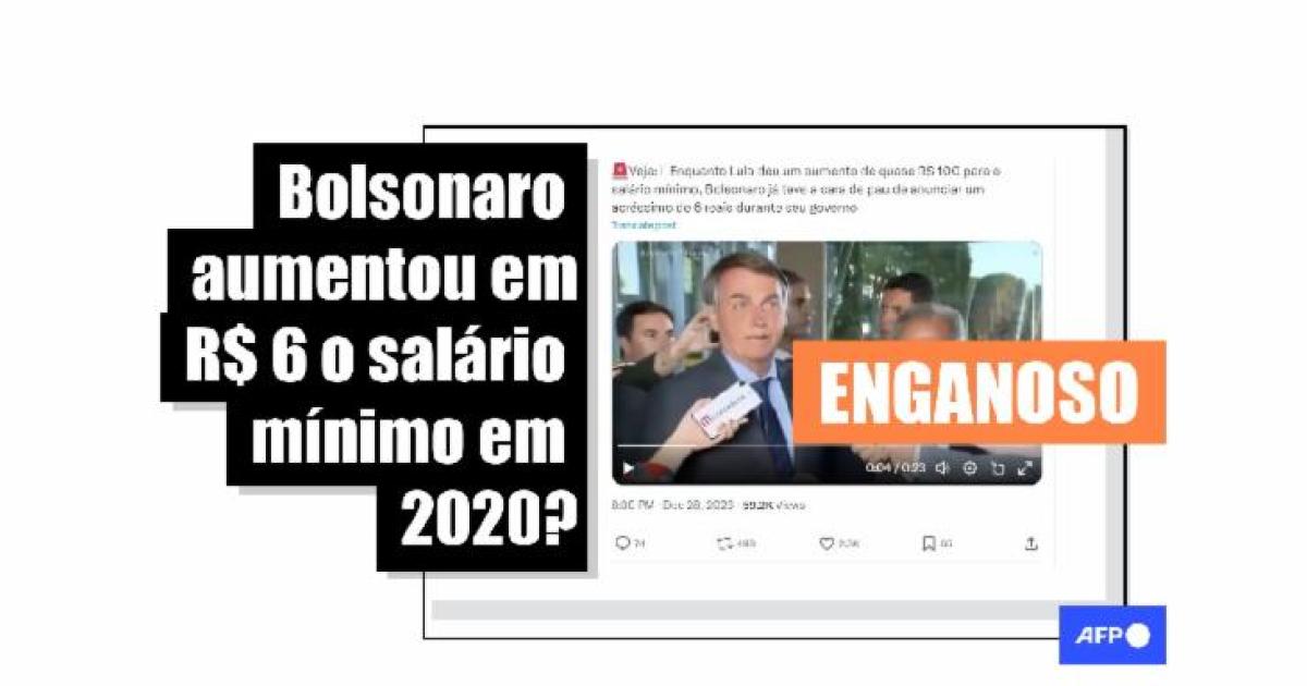 No entanto, as publicações virais enganam ao afirmar que Bolsonaro aumentou somente em R$ 6 o salário mínimo em um dos anos de seu governo. Na verdade, a entrevista era sobre um segundo aumento em 2020, que teve alta acumulada de R$ 47 em comparação a 2019.