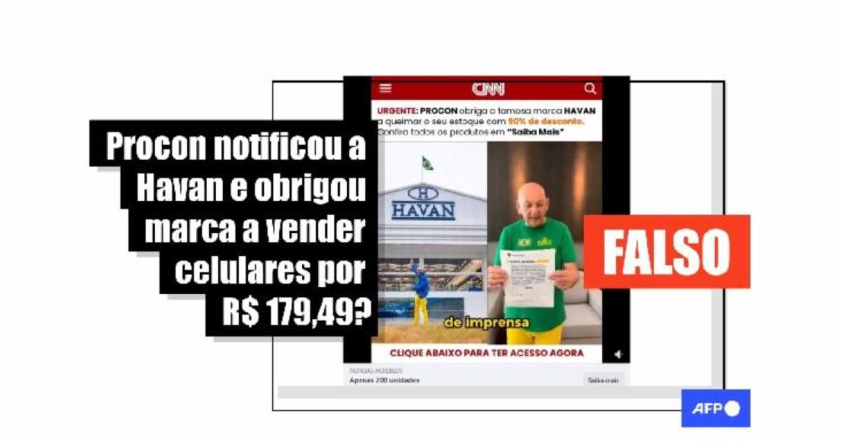 “Procon Notificou Havan, agora a empresa terá que vender o aparelho celular por apenas R$ 179,49”, diz uma das publicações no Facebook, acompanhada de um vídeo em que o fundador da rede de lojas, Luciano Hang, parece anunciar a notícia.