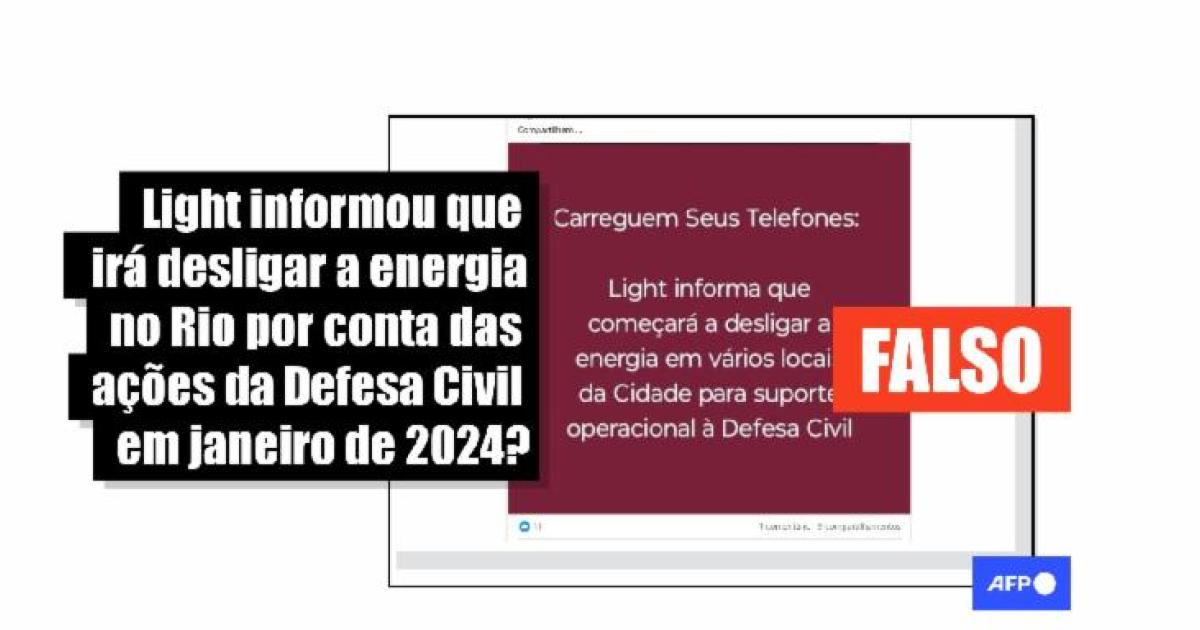 Ao AFP Checamos, a Light informou que “é fake news a informação que está circulando pelas redes sociais” e que o fornecimento de energia está “normal”.