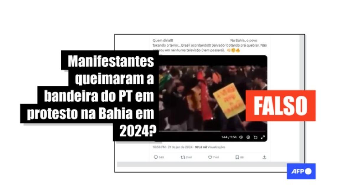 “Quem diria!!! Na Bahia, o povo tocando o terror... Brasil acordando!!! Salvador botando prá quebrar. Não passou em nenhuma televisão (nem passará)”, diz uma das publicações compartilhadas no X. O conteúdo circula também no Facebook.
