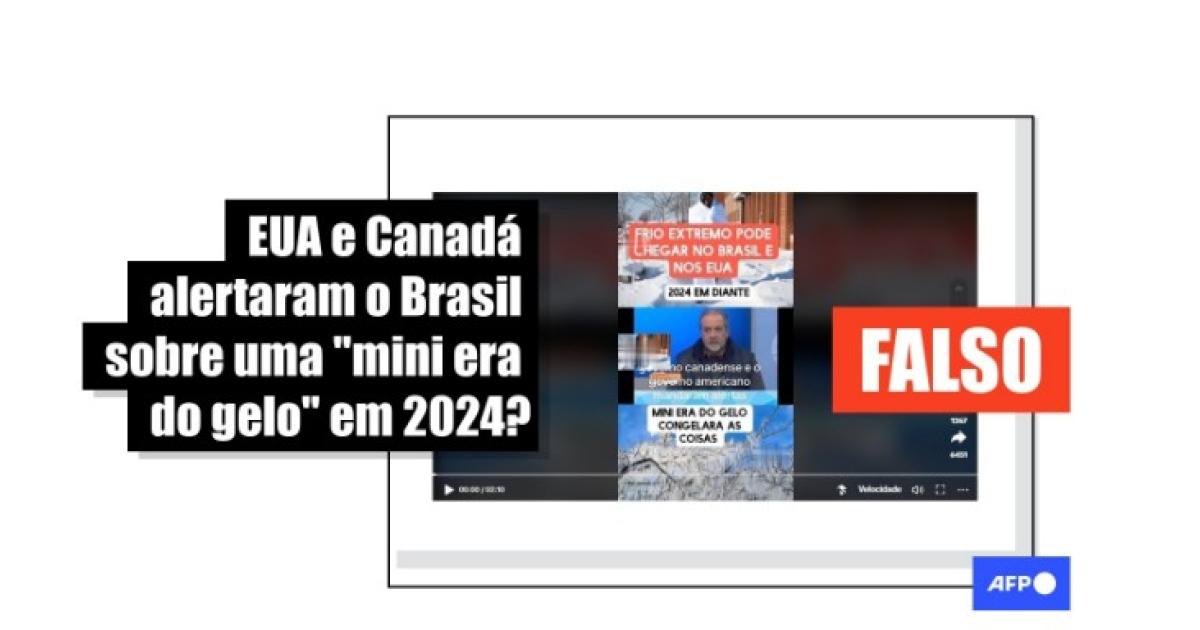 “Frio extremo pode chegar no Brasil e nos EUA [de] 2024 em diante”, lê-se em uma mensagem no vídeo que circula no TikTok, no Kwai, no Facebook e no Instagram. O conteúdo também se refere a esse suposto período como uma “mini era do gelo”.