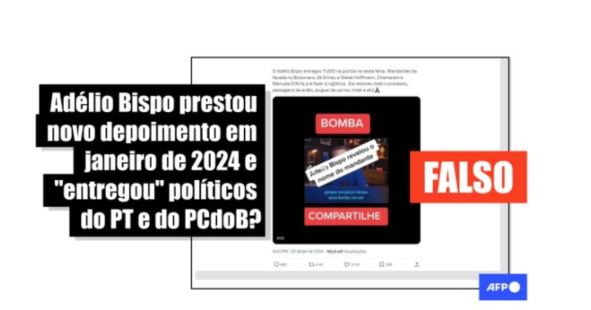 Contudo, não é verdade que Adélio tenha prestado novo depoimento nem que tenha citado a participação do ex-ministro da Casa Civil (2003 -2005) José Dirceu, da presidente do PT e deputada federal Gleisi Hoffmann e da ex-deputada federal Manuela D’Ávila.