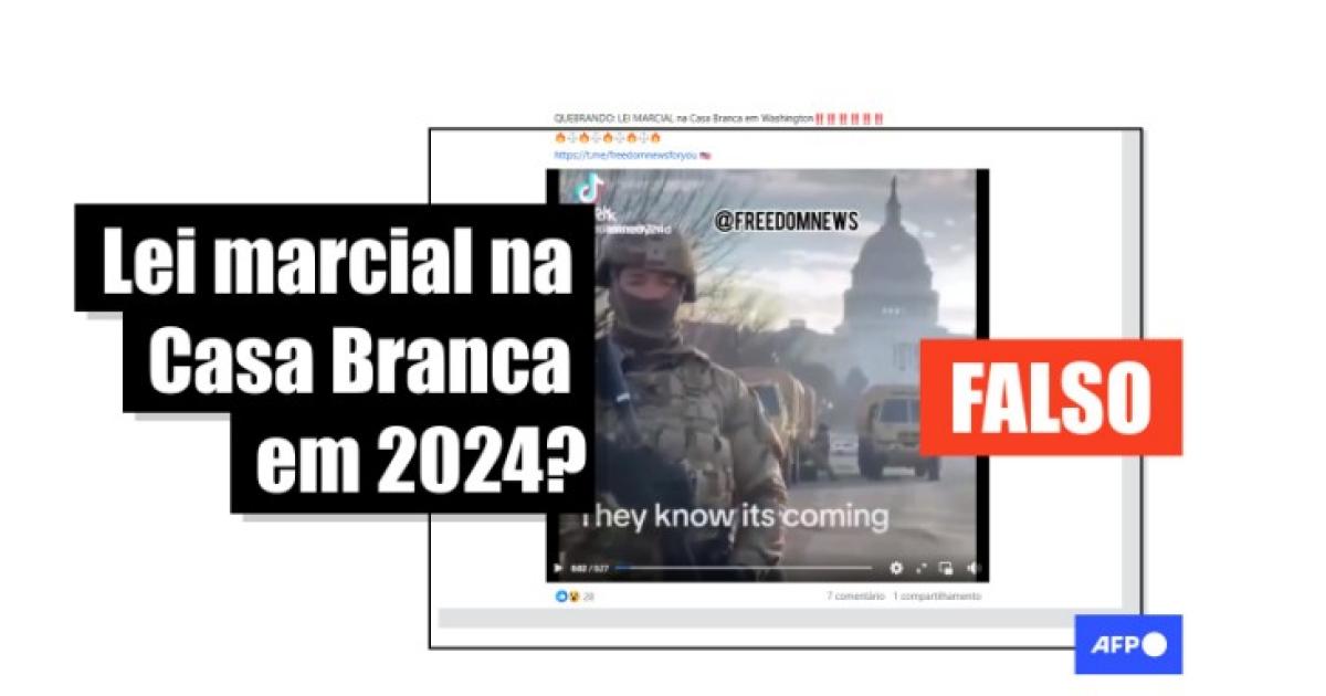 “LEI MARCIAL na Casa Branca em Washington”, diz a legenda de publicações no Facebook, no Telegram e no X.