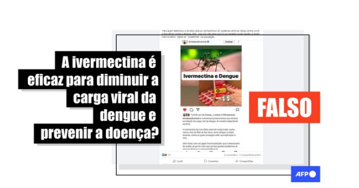 “A ivermectina já demonstrou sua eficácia na redução da carga viral da dengue, de maneira dependente da dose (...). Da mesma forma, os indivíduos que recebem doses profiláticas de IVM não contrairão dengue”, diz parte do texto compartilhado no Instagram, no Facebook e no Telegram.