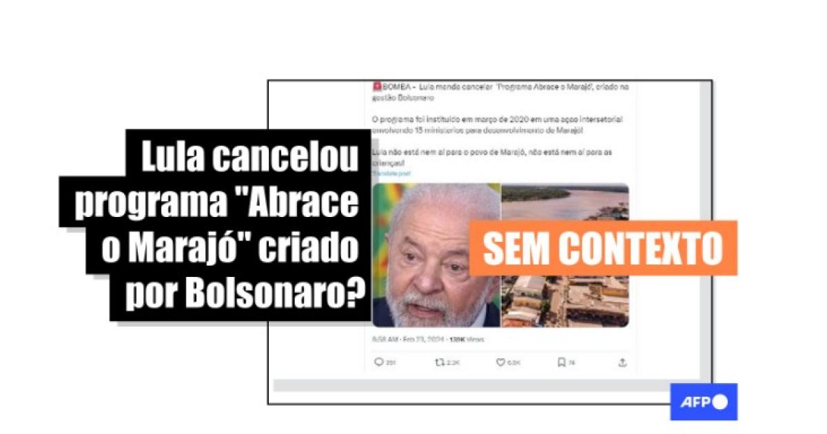 “BOMBA Lula manda cancelar 'Programa Abrace o Marajó', criado na gestão Bolsonaro (...) Lula não está nem aí para o povo de Marajó, não está nem aí para as crianças!”, indicam os textos das publicações compartilhadas no X, no Facebook e no Instagram.