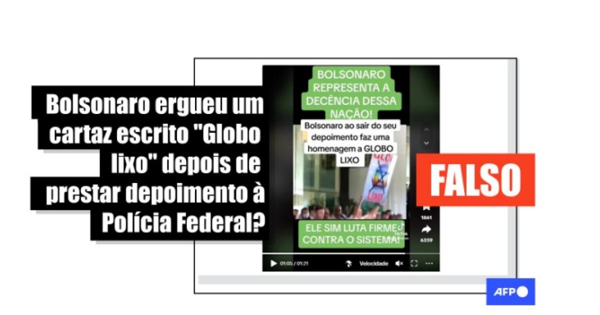 Vídeo de Bolsonaro com cartaz escrito “Globo lixo” é de 2021, e não após depoimento à PF em 2024