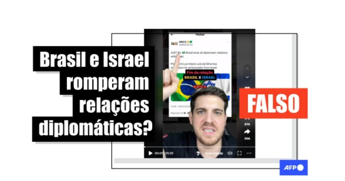 “Fim das relações diplomáticas BRASIL e ISRAEL”, diz a legenda de publicações no Instagram, no TikTok e no Kwai. Conteúdo semelhante circula no Facebook e no X.