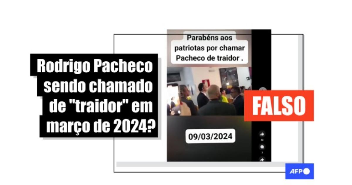 “Parabéns aos patriotas por chamar Pacheco de traidor . 09/03/2024”, diz o texto sobreposto a postagens que circulam no Facebook, no Kwai e no Telegram.