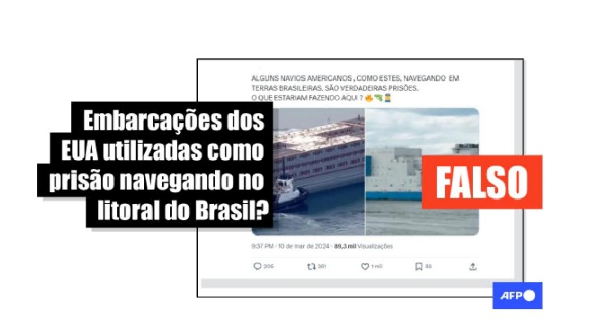 É falso que navios-prisão dos EUA navegaram pela costa brasileira em março de 2024