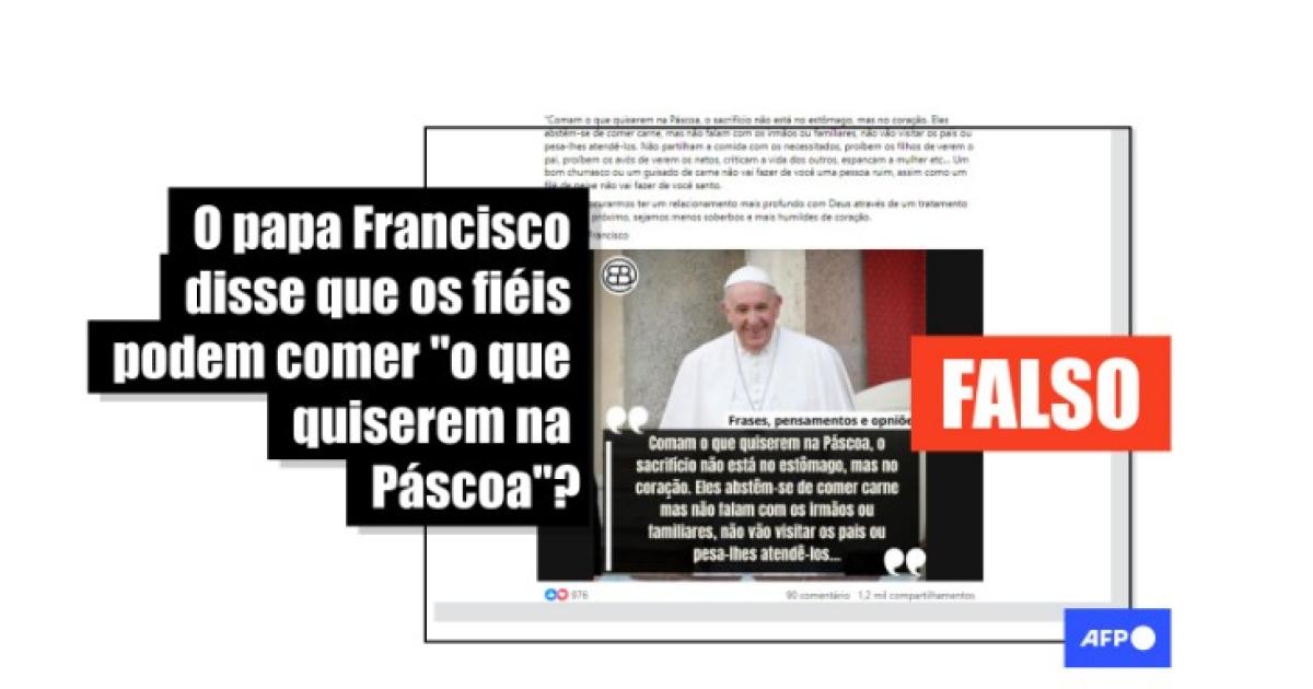 A frase “comam o que quiserem na Páscoa” não é do papa Francisco e circula pelo menos desde 2018