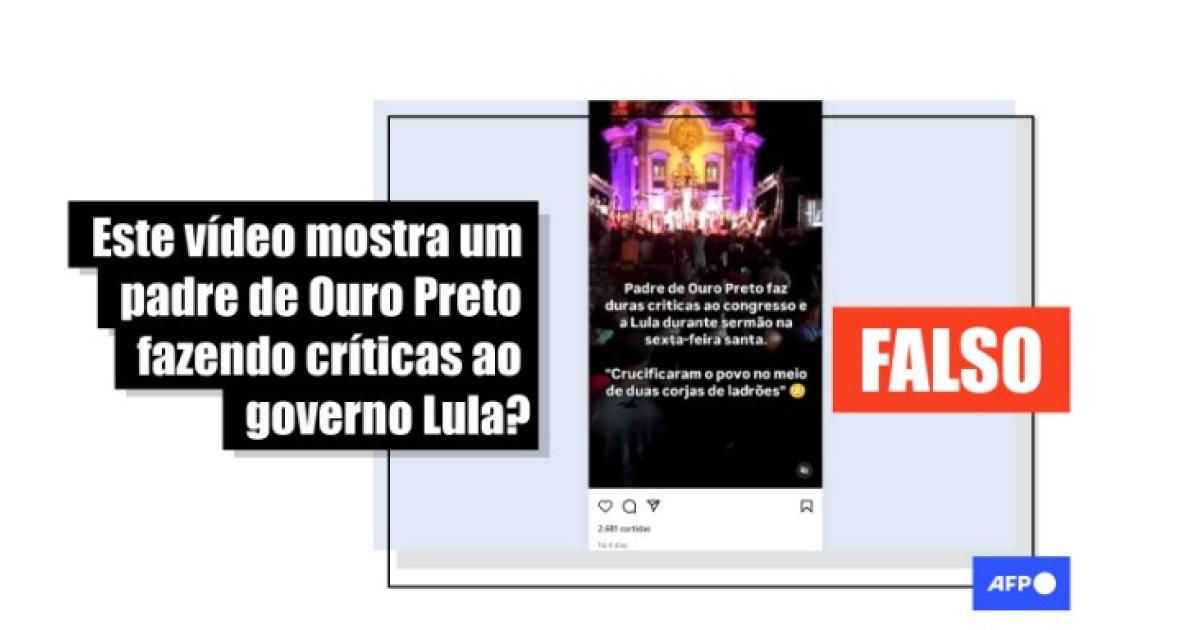 “Padre de Ouro Preto faz duras críticas ao congresso e a Lula durante sermão na sexta-feira santa”, diz o trecho de uma mensagem compartilhada com o vídeo no Instagram, no Facebook, no X e no Kwai.