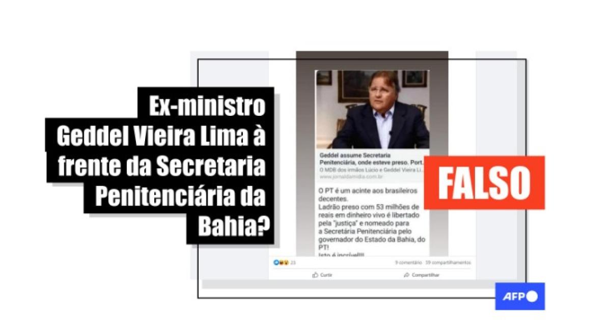 Apesar de o título informar que Lima “assume” a Secretaria de Administração Penitenciária e Ressocialização, a matéria fala da nomeação de outra pessoa para chefiar a pasta: José Antônio Maia Gonçalves. Além disso, aponta que o “governo” deu o cargo “ao MDB”, partido de Lima.