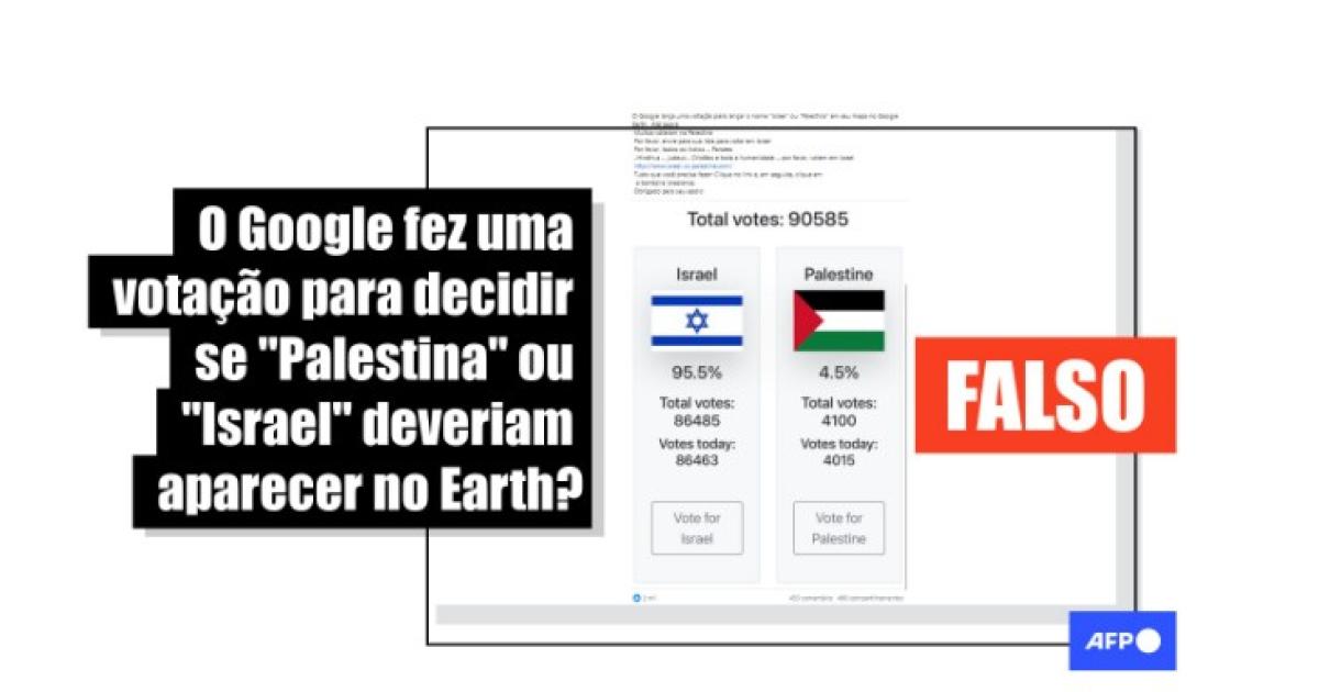“O Google lançou uma votação para adicionar o nome ‘Israel’ ou ‘Palestina’ ao mapa do Google Earth”, diz a legenda de publicações no Facebook e no X.