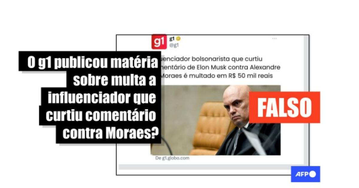 O portal g1 não publicou uma notícia sobre multa a influenciador por curtir post contra Moraes