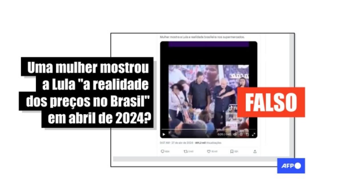 “Mulher mostra a Lula e realidade brasileira nos supermercados”, diz uma das publicações que circulam no X, no Instagram, no TikTok, no Facebook, no Kwai e no YouTube.