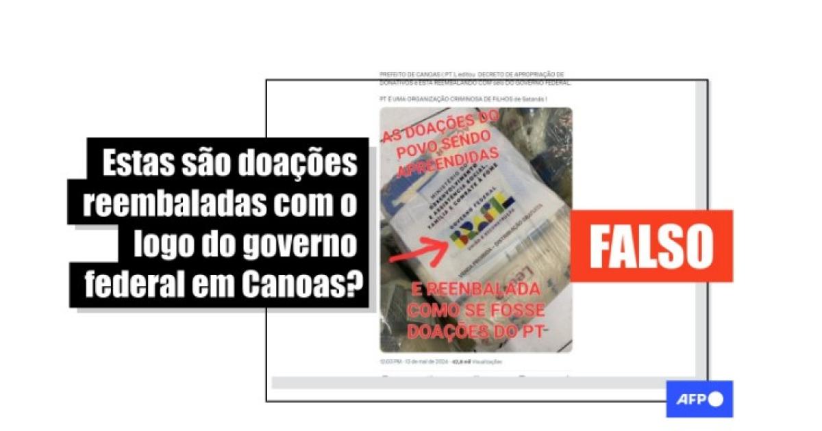 Foto viral não mostra doações “reembaladas” com o logo do governo federal em Canoas