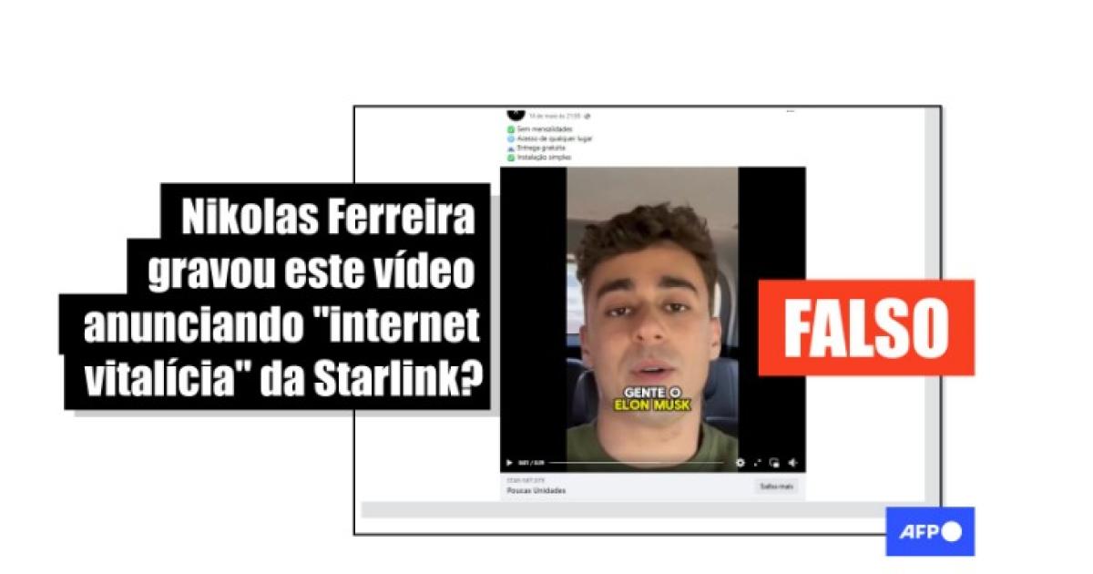 No vídeo, o deputado federal Nikolas Ferreira parece dizer: “Gente, o Elon Musk está distribuindo internet no Brasil quase que de graça. Só é preciso pagar o plano da Starlink uma única vez que a antena chega diretamente na sua casa e funciona de qualquer lugar do mundo com internet 5G via satélite”.