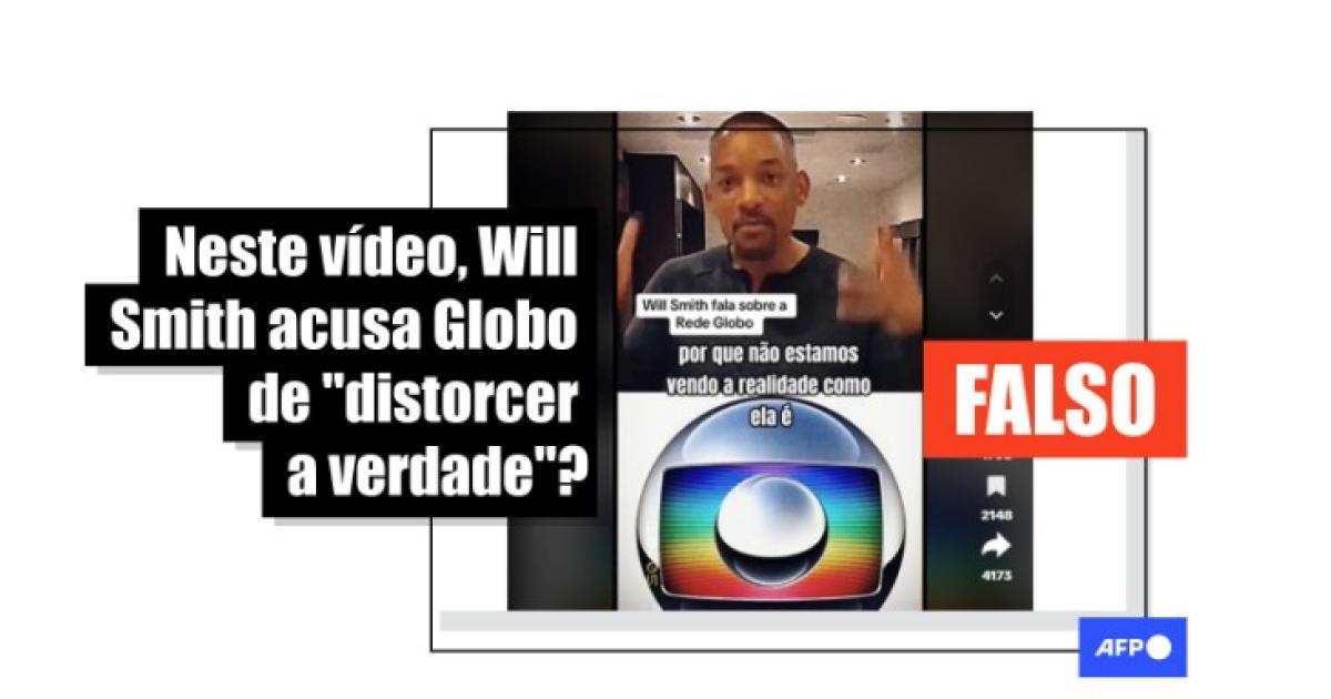 “Will Smith fala sobre a Rede Globo”, diz a frase sobreposta ao vídeo compartilhado no Facebook, no TikTok, no Kwai, no YouTube e no X.
