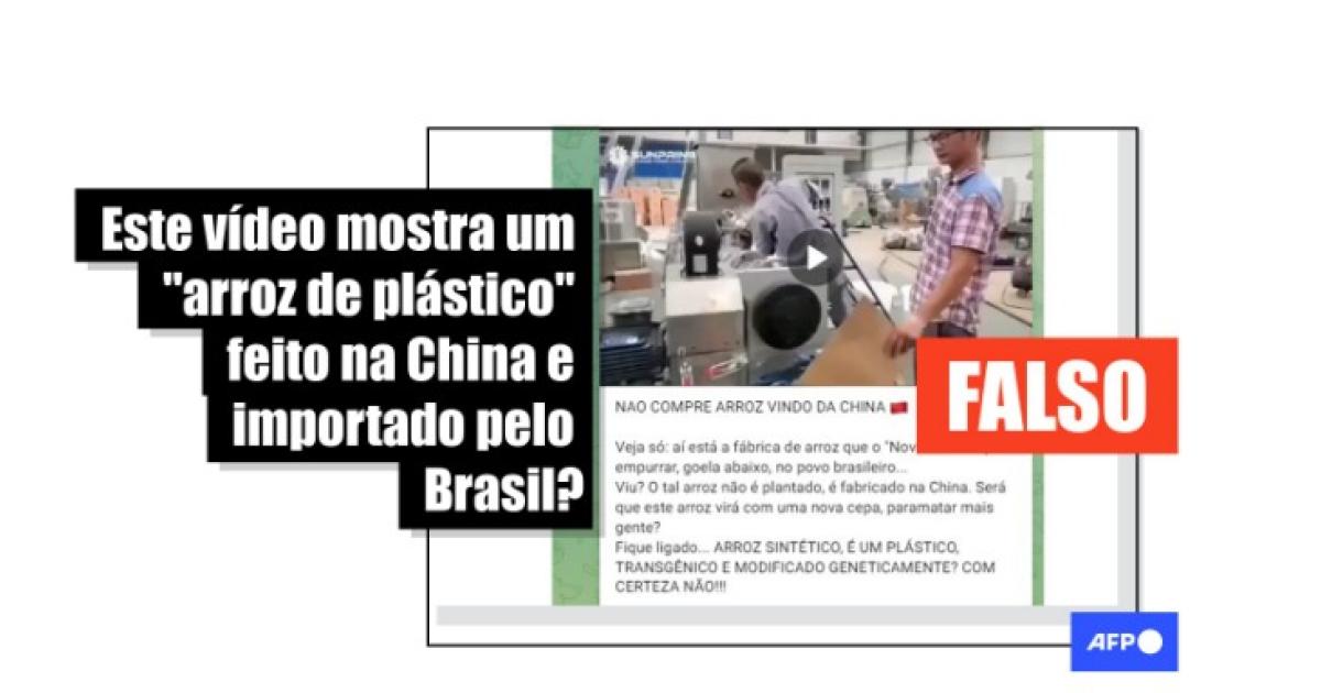 Contudo, a gravação de uma fábrica chinesa não mostra a produção de “arroz de plástico” importado pelo Brasil.