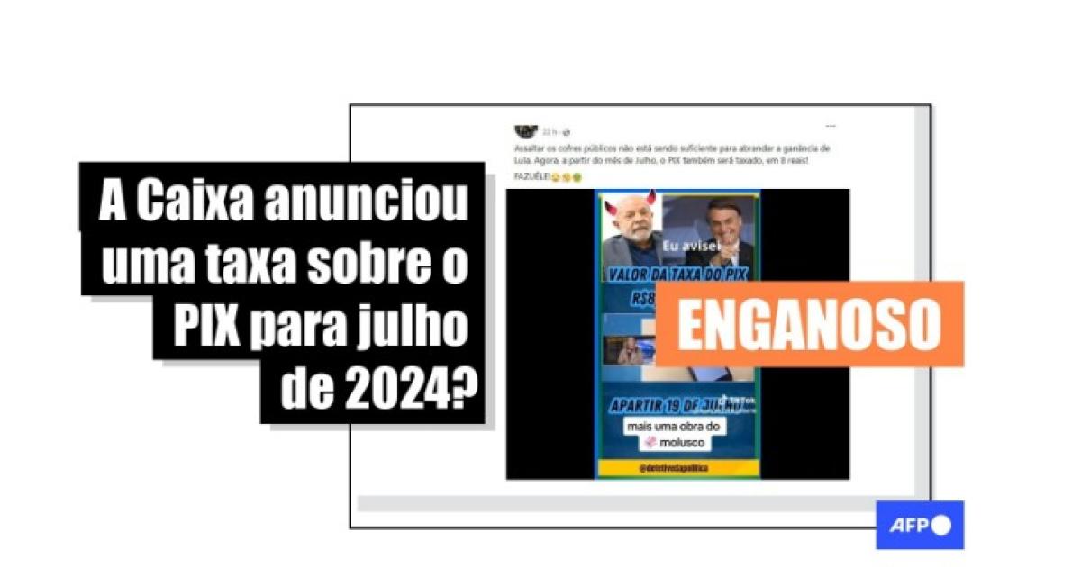 “Assaltar os cofres públicos não está sendo suficiente para abrandar a ganância de Lula. Agora, a partir do mês de Julho, o PIX também será taxado, em 8 reais! FAZUÉLE!”, diz uma das publicações compartilhadas no Facebook, no Instagram, no Threads, no X, no TikTok e no YouTube.