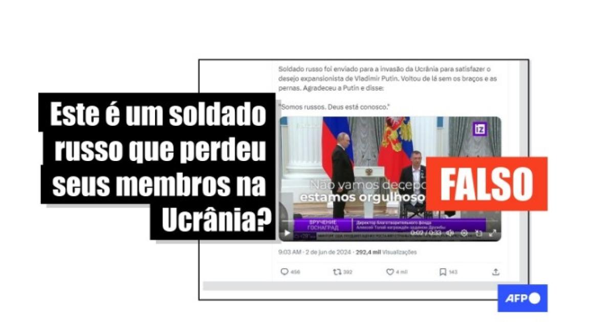 “Soldado russo foi enviado para a invasão da Ucrânia para satisfazer o desejo expansionista de Vladimir Putin. Voltou de lá sem os braços e as pernas. Agradeceu a Putin e disse: ‘Somos russos. Deus está conosco’", diz uma das mensagens compartilhadas no X. O conteúdo circula também no Facebook, no Instagram, no Telegram e no Kwai.
