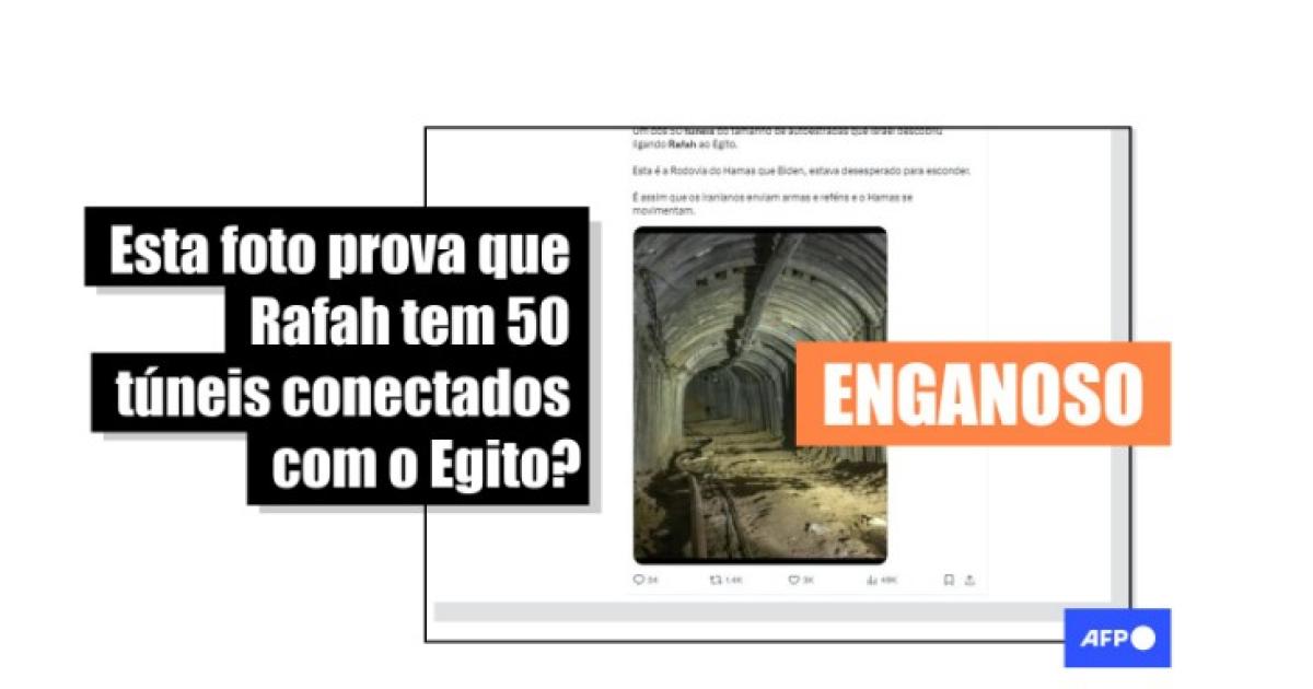 “Um dos 50 túneis do tamanho de autoestradas que Israel descobriu ligando Rafah ao Egito”, diz um trecho da legenda que circula com a foto no Instagram, no Facebook, no X e no Threads.