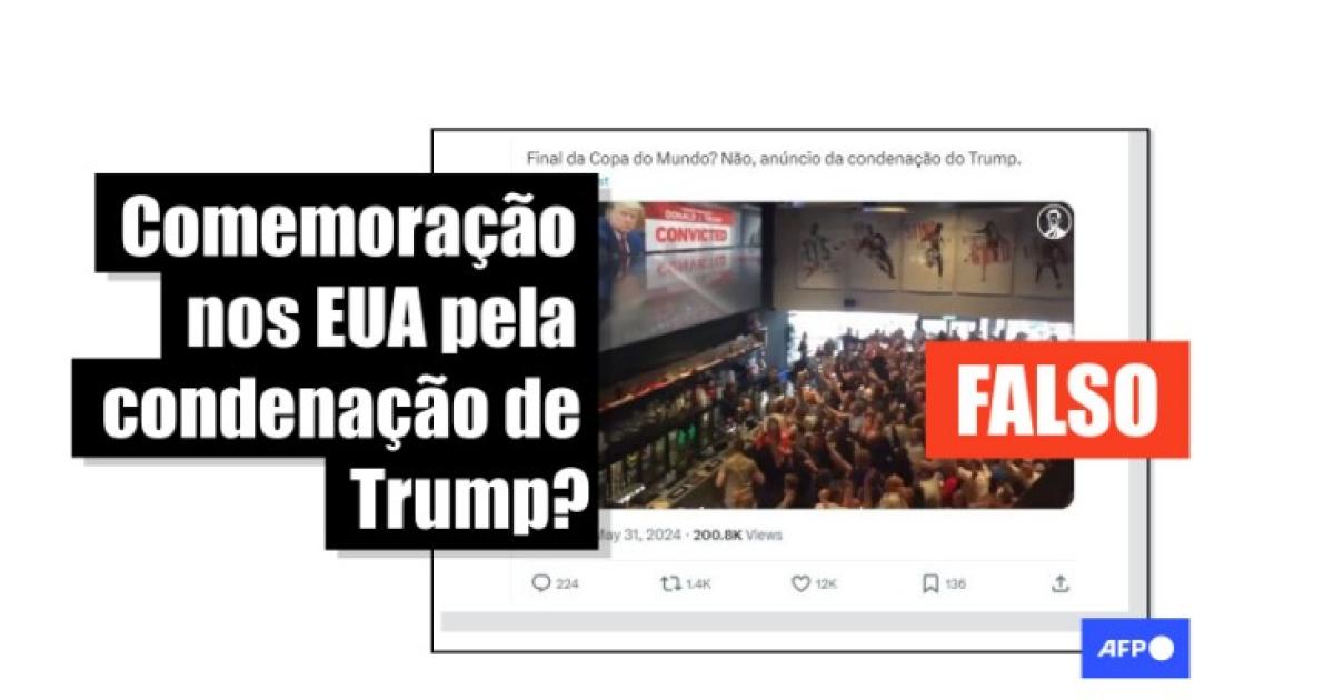 “Final da Copa do Mundo? Não, anúncio da condenação do Trump”, diz a legenda que acompanha o vídeo no X e no Facebook. Ele também circula no Instagram, no YouTube e no Kwai.