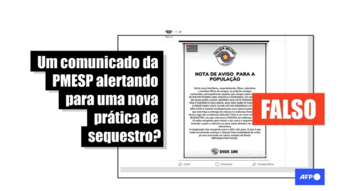 Polícia Militar de São Paulo não publicou um comunicado sobre novo método de sequestro