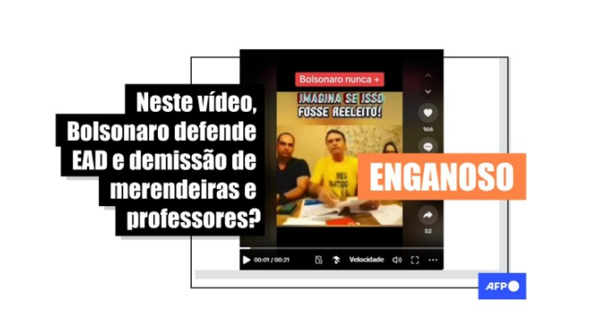 Na gravação, Bolsonaro afirma: “Eu vou implementar o ensino à distância. Acabando aqui com o quadro de professores, merendeiras e outras coisas mais”.