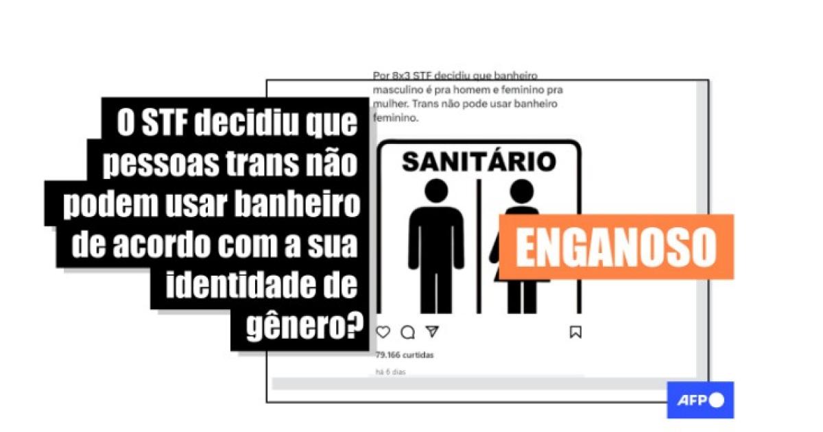 “Por 8x3 STF decidiu que banheiro masculino é pra homem e feminino pra mulher. Trans não pode usar banheiro feminino”, afirmam publicações no Facebook, no Instagram, no Telegram e no X.