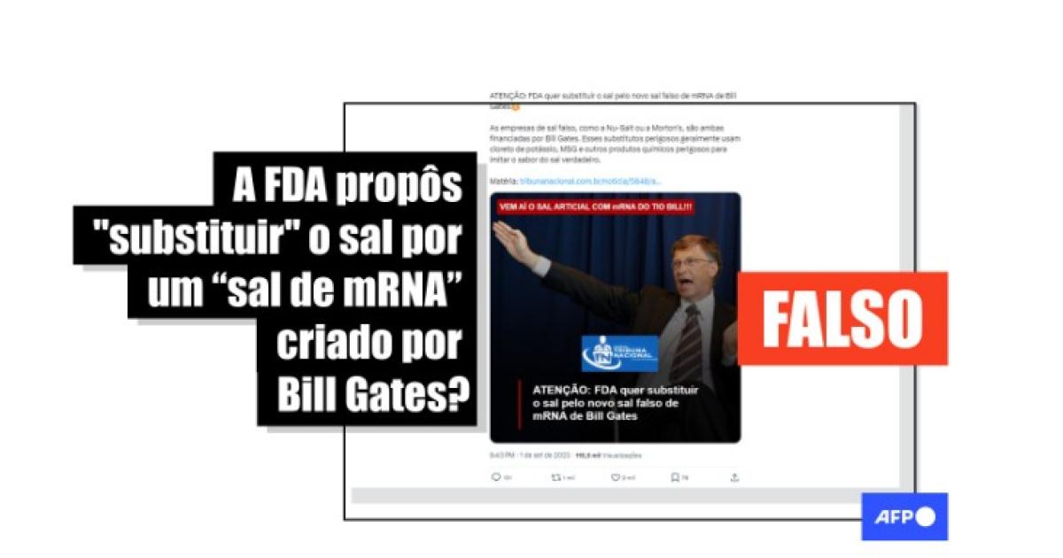 “FDA quer substituir o sal pelo novo sal falso de mRNA de Bill Gates”, afirmam publicações no Facebook, no Instagram, no Telegram e no X.