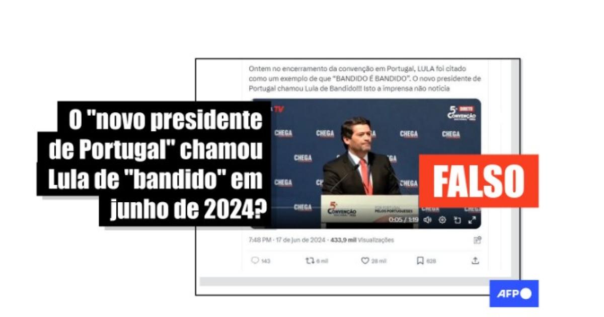 “*Que beleza! Ontem encerramento da convenção em Portugal, LULA foi citado como um exemplo de que ‘BANDIDO É BANDIDO’. O novo presidente de Portugal chamou Lula de Bandido!!! Isto a imprensa não noticia, mas nós temos as redes sociais para mostrar”, diz uma das publicações que circulam no Facebook, no X, no TikTok, no Kwai, no Telegram e no Instagram.