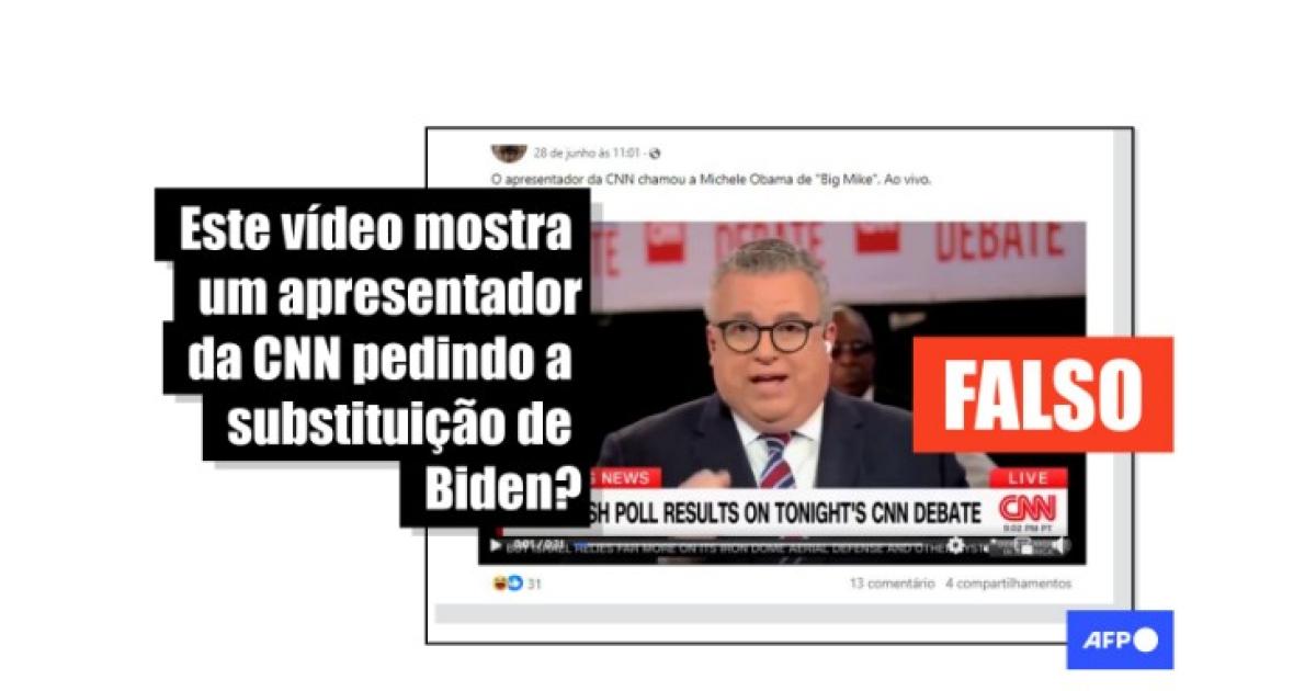 “MICHELLE É BIG MIKE? O apresentador da CNN ao referir-se à Michelle Obama a chama de ‘Big Mike’! Ao vivo e em rede de alcance internacional, ao comentar o fracasso de Joe Biden frente a Donald Trump no debate, o ancora da CNN sugere que Joe Biden seja imediatamente substituído, citando possíveis nomes, quando se refere a Michelle Obama, ela a chama de Big Mike”, diz uma das publicações compartilhadas no X, no Facebook, no Instagram e no Telegram.