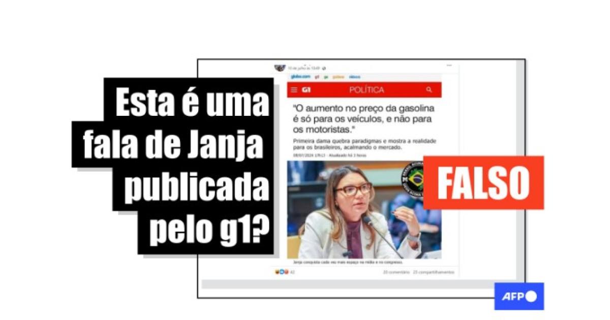 É uma montagem a suposta notícia do g1 com fala de Janja sobre aumento no preço da gasolina