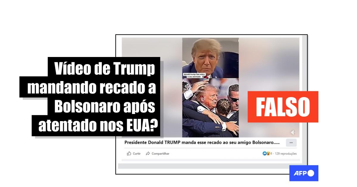 No entanto, o vídeo viral não mostra uma mensagem de Trump a Bolsonaro em 2024.
