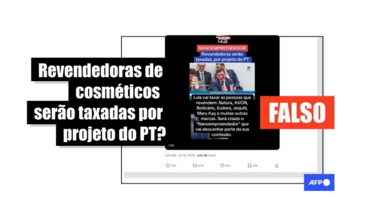 “NANOEMPREENDEDOR Revendedoras serão taxadas, por projeto do PT. Lula vai taxar as pessoas que revendem: Natura, AVON, Boticário, Eudora, Jequiti, Mary Kay e muitas outras marcas. Será criado o “Nanoempreendedor” que vai abocanhar parte da sua comissão”, diz o texto sobreposto ao vídeo que circula no Instagram, no Facebook, no X, no Kwai e no TikTok.