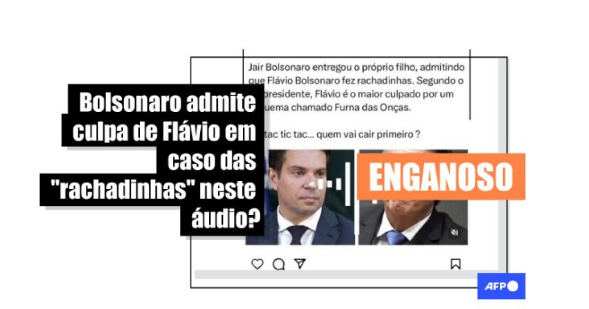 As publicações reproduzem o trecho de um áudio, em que inicialmente se ouve uma mulher falando da possibilidade de anular a operação Furna da Onça, que investigou casos de “rachadinha” na Assembleia Legislativa do Estado do Rio de Janeiro (Alerj). Em seguida, se ouve Jair Bolsonaro falando: “O maior culpado na Furna da Onça etc. é o Flávio”.