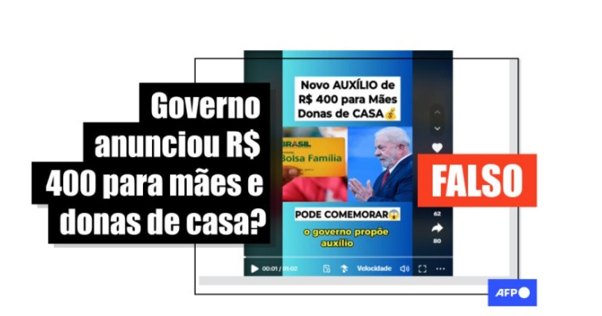 “Governo propõe auxílio fixo de R$ 400 para mães donas de casa”, diz a legenda de uma publicação no Instagram, no Facebook, no TikTok e no Kwai.