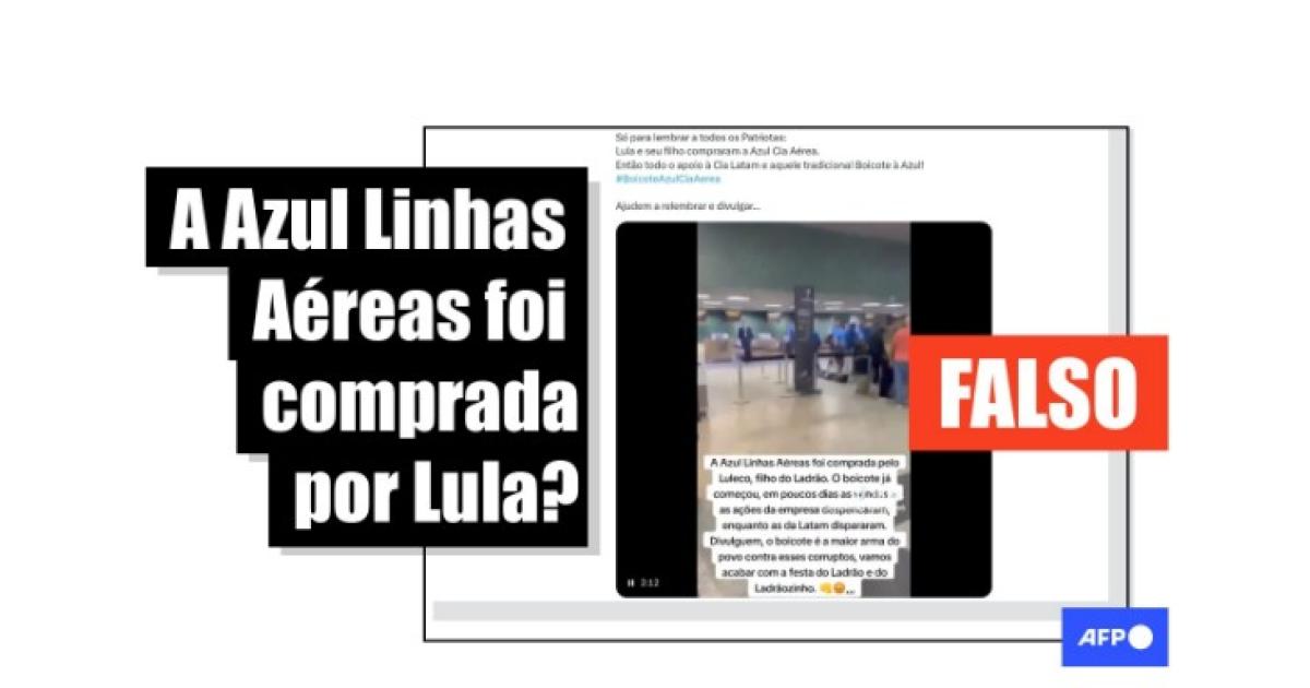 “Só para lembrar a todos os Patriotas: Lula e seu filho compraram a Azul Cia Aérea. Então todo o apoio à Cia Latam e aquele tradicional Boicote à Azul!”, diz o texto sobreposto a uma das publicações compartilhadas no Facebook, no Instagram, no TikTok, no Kwai e no X.