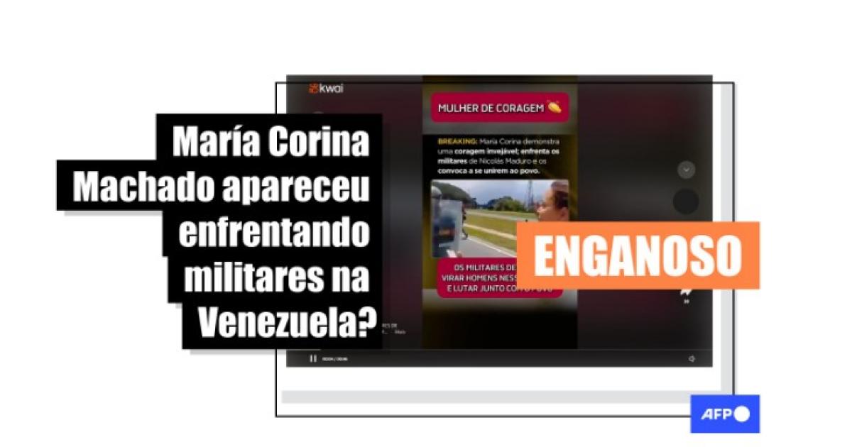 “Breaking: Maria Corina enfrenta a Guarda Nacional de Maduro e pede para que eles se juntem ao povo”, lê-se em publicações no Facebook e no Instagram. Alegações semelhantes circulam no Threads, no Kwai, no X e no Telegram.