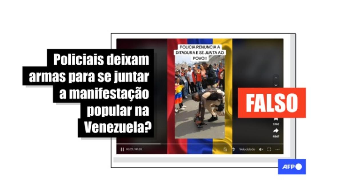 “Policia renuncia a ditadura e se junta ao povo”, lê-se nas publicações compartilhadas no Facebook, no TikTok, no Kwai e no YouTube.