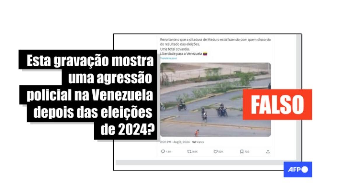 “Revoltante o que a ditadura de Maduro está fazendo com quem discorda do resultado das eleições. Uma total covardia. Liberdade para a Venezuela”, lê-se na legenda que circula com o vídeo no Facebook, no Instagram, no X e no Kwai.