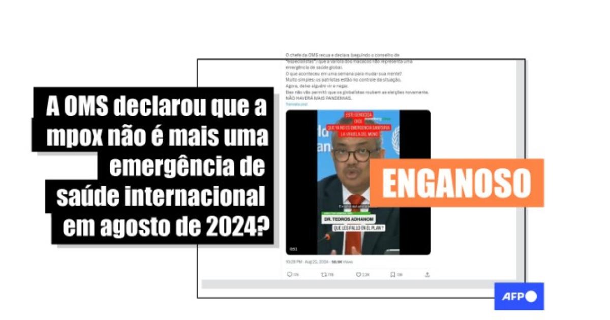 A própria OMS declarou no X que a mensagem viral de Adhanom declarando o fim da emergência sanitária mundial de mpox é de 2023.