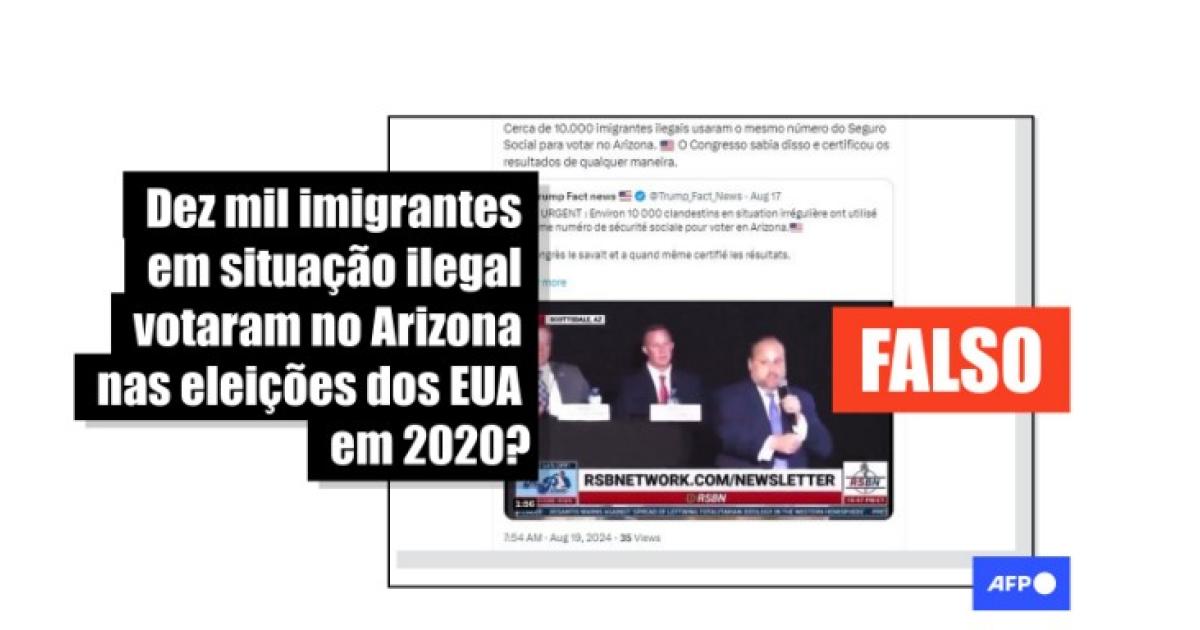“Cerca de 10.000 imigrantes ilegais usaram o mesmo número do Seguro Social para votar no Arizona [em 2020]. O Congresso sabia disso e certificou os resultados de qualquer maneira”, alegam publicações no X, no Facebook, no Telegram e no Kwai.