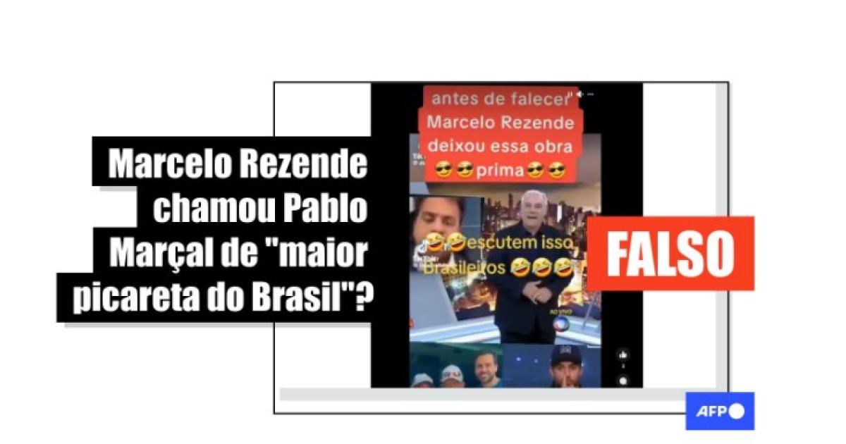 Logo antes do início da fala compartilhada no conteúdo viralizado, vista aos 11 segundos, Rezende aponta para uma televisão que, em vez de um vídeo de Marçal, exibe a fotografia de um homem vestindo uma camiseta branca, e diz: “Esse cara chama Marcelo, Marcelo Nascimento”.